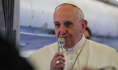 Francis made the comments during a press conference to journalists during a 46 minute in-flight journey on the way home from a three day trip to Turkey.