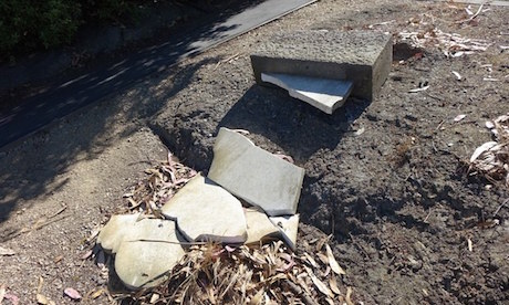 Constable Greg Marsden said two headstones had been hit with so much force that they ”have broken in half”.