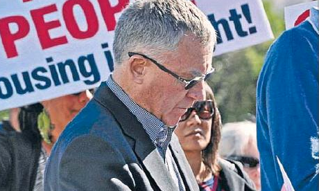 Cardinal John Dew recently joined protesters concerned about empty Housing New Zealand properties and growing urgent housing lists.