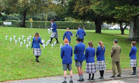 St Peter’s College, Gore, was one of many schools to set up a Field of Remembrance to commemorate ANZAC day.
