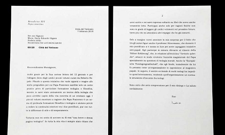 The Vatican admits an image of a letter it sent the media last week did not include the full copy.