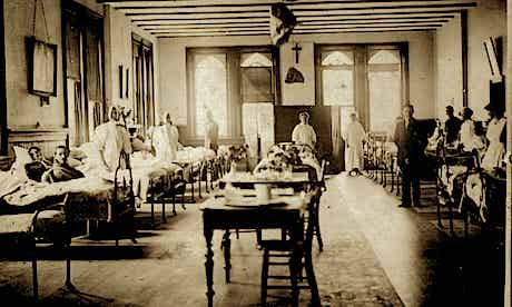 The hospital was open for one month. There were 48 beds, and the sisters and volunteers nursed 91 men of every denomination. 54 survived and 37 died.