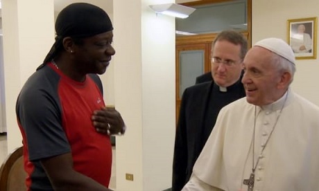 During the subsequent meeting with Francis, Amos said to him: “So me coming on this pilgrimage, being non-religious, I was looking for answers and faith. But as a gay man, I don’t feel accepted.”