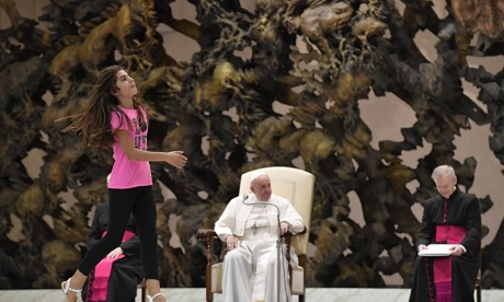 Francis told his security staff to “let her be. God speaks” through children and reflected on the girl – who seemed oblivious to the occasion – saying she is “a victim of an illness and doesn’t know what she is doing.