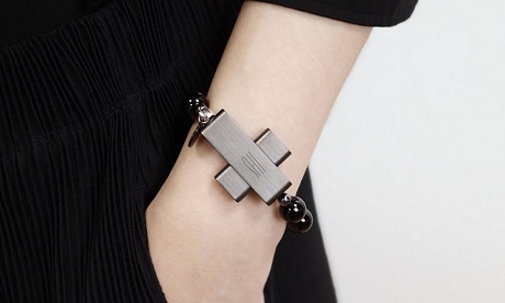 The device can be worn as a bracelet and is made of 10 consecutive black agate and hematite beads.