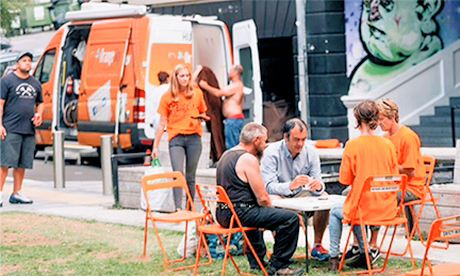 Orange Sky runs custom fitted vans with two washing machines, two dryers and a shower to provide a free laundry and shower service to those currently experiencing homelessness.