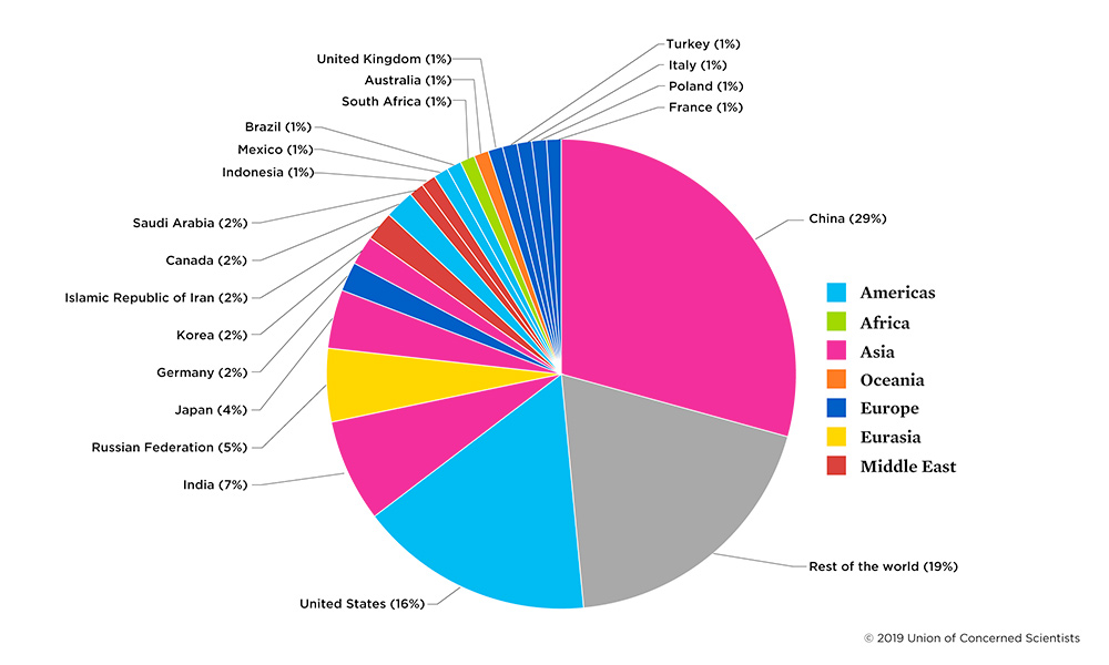The top 10 percent of countries (20 of them) make up 81 percent of global carbon discharges, starting with China, the United States, India, Russia, and Japan.