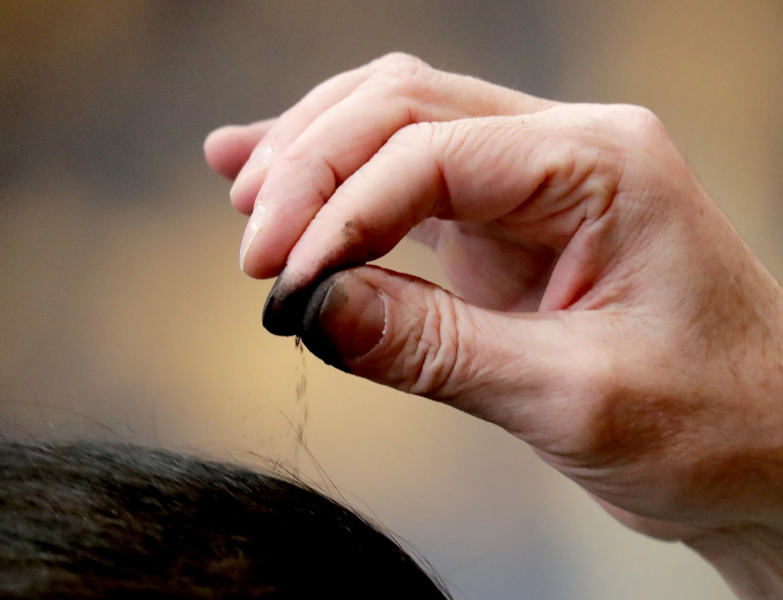 Customarily, the minister marks the forehead of each participant’s forehead with black ashes, in the shape of a cross.
