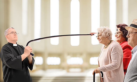 “I call it the long finger” beamed Father Augustus McNamara, proudly showing off an ‘ashing device’ made from four broom handles duct-taped together with a rubber index finger stapled to the end of it.
