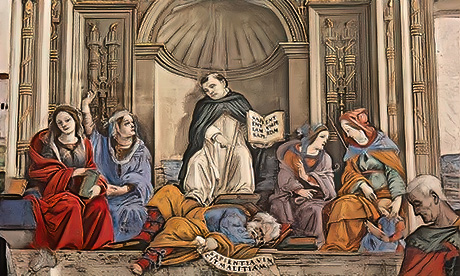 In the Carafa Chapel in the church of Santa Maria sopra Minerva in Rome, there is a statue of the revered Catholic figure St Thomas Aquinas with the Latin inscription, Sapientiam sapientum perdam.