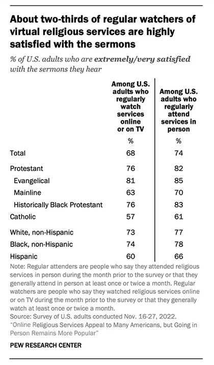 It came out of a study, conducted in November and released early this month, of satisfaction with online and in-person church attendance.
